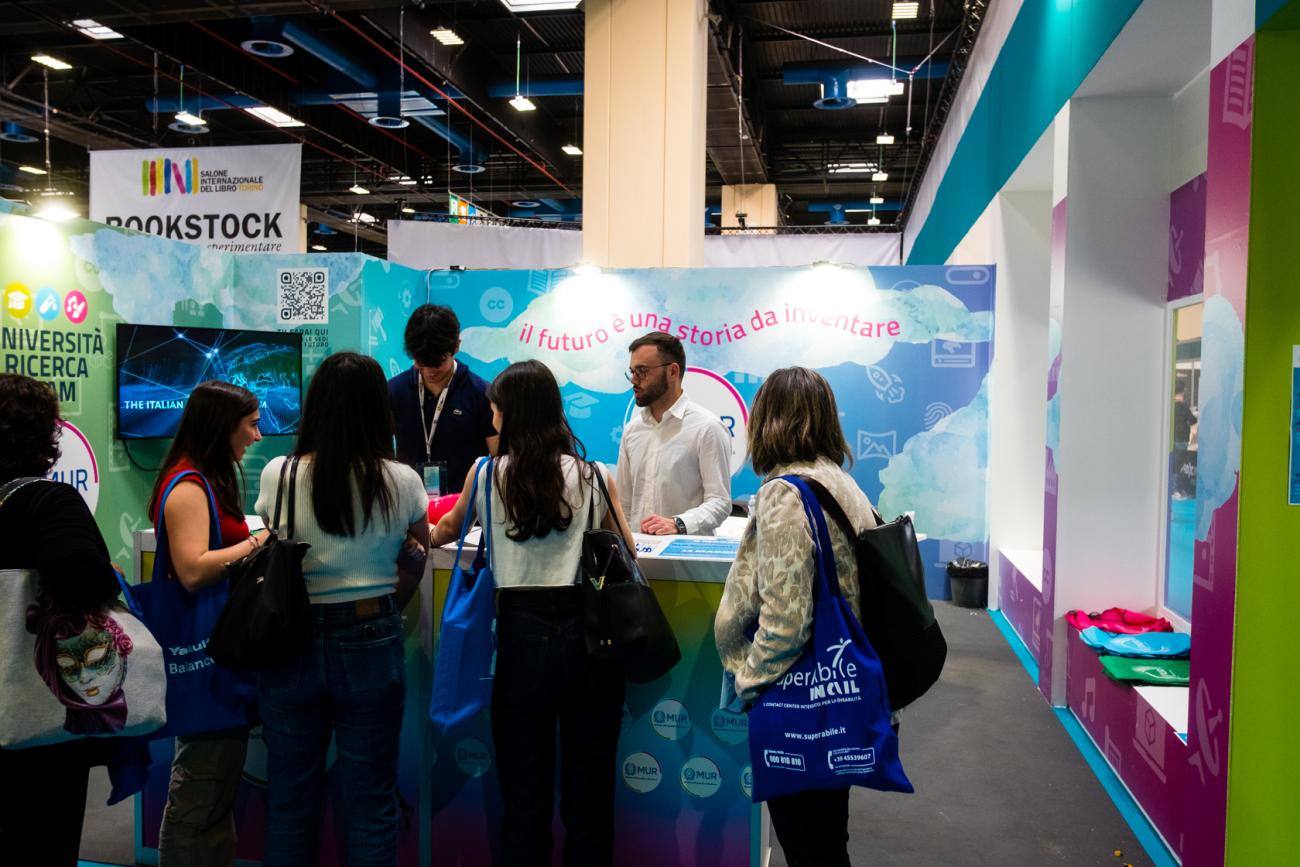 Al Salone Internazionale del Libro, lo stand informativo, interamente allestito dal MUR, ha registrato una grande affluenza di visitatori e ha consentito una forte interazione con il pubblico.